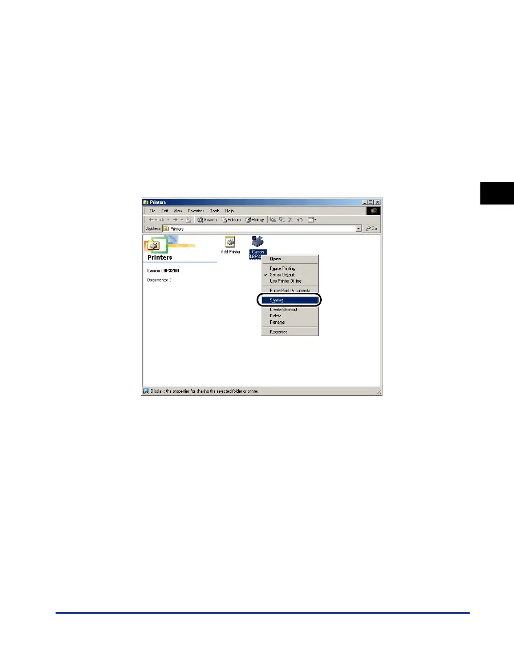 Right-click [Canon LBP3200] icon, then select [Sharing] from