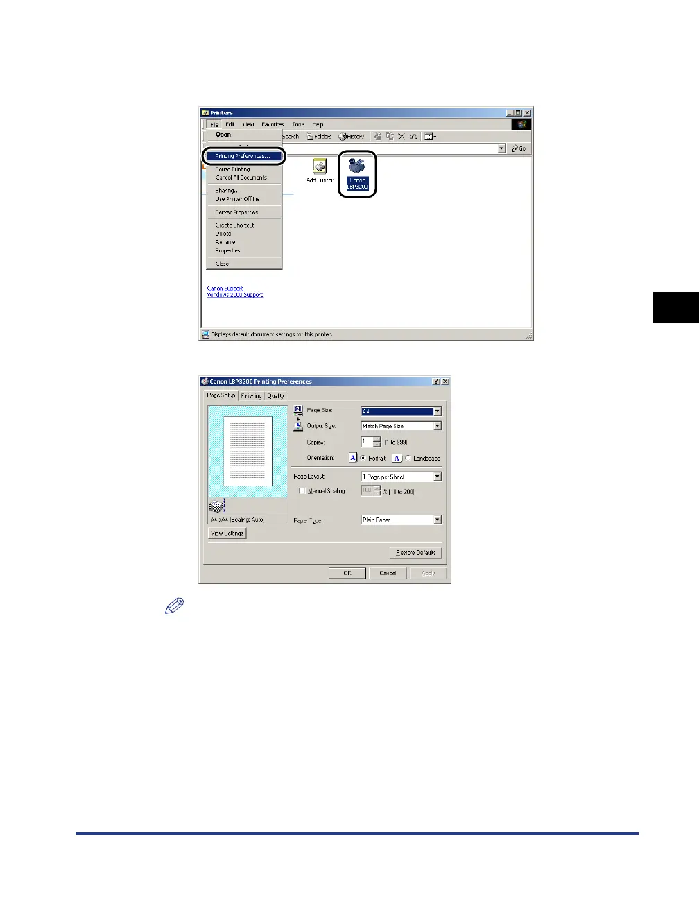 [Canon LBP3200] icon and selecting [Printing Preferences] from the pop-up menu.
