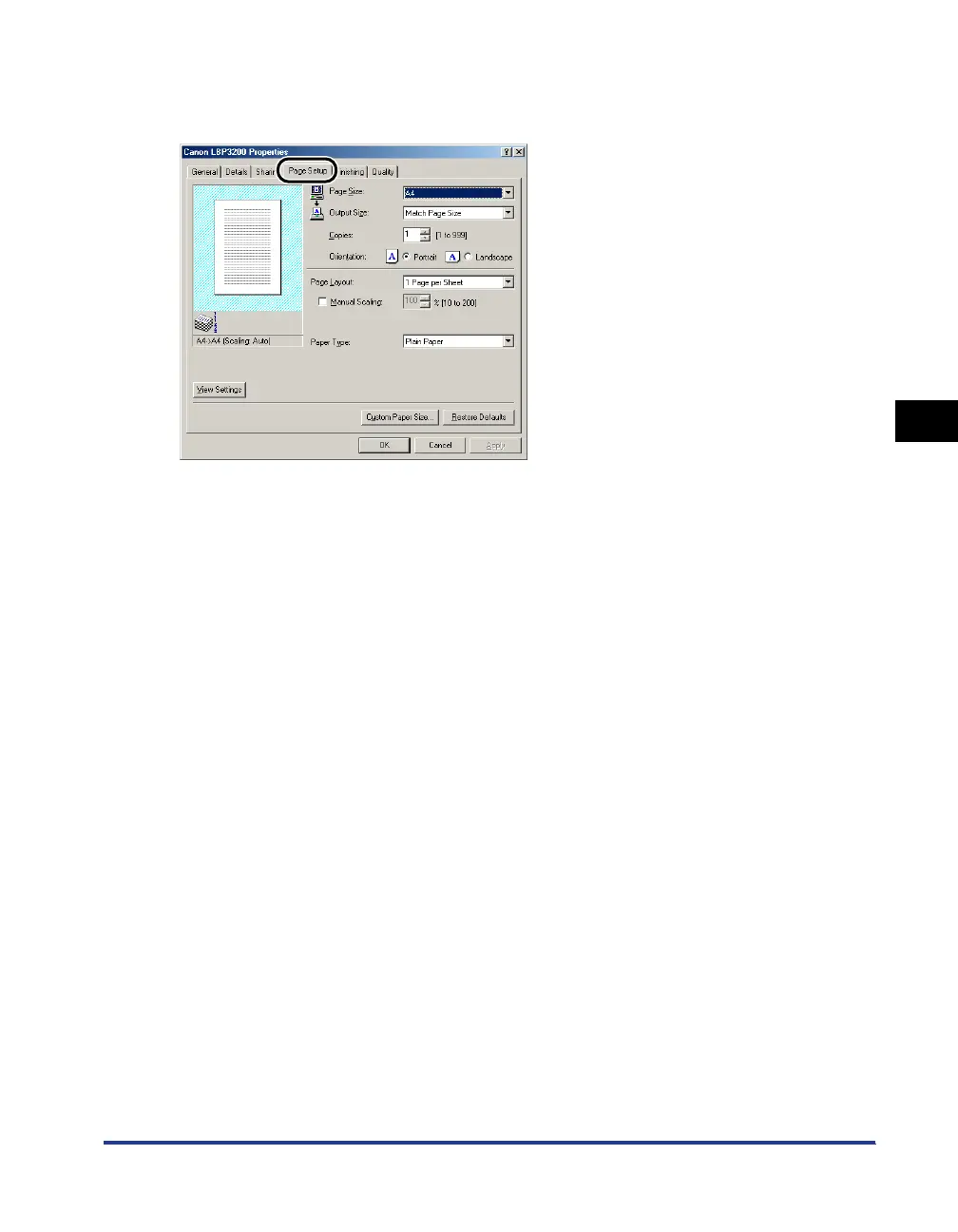 The [Page Setup] sheet allows you to specify the following printing preferences.