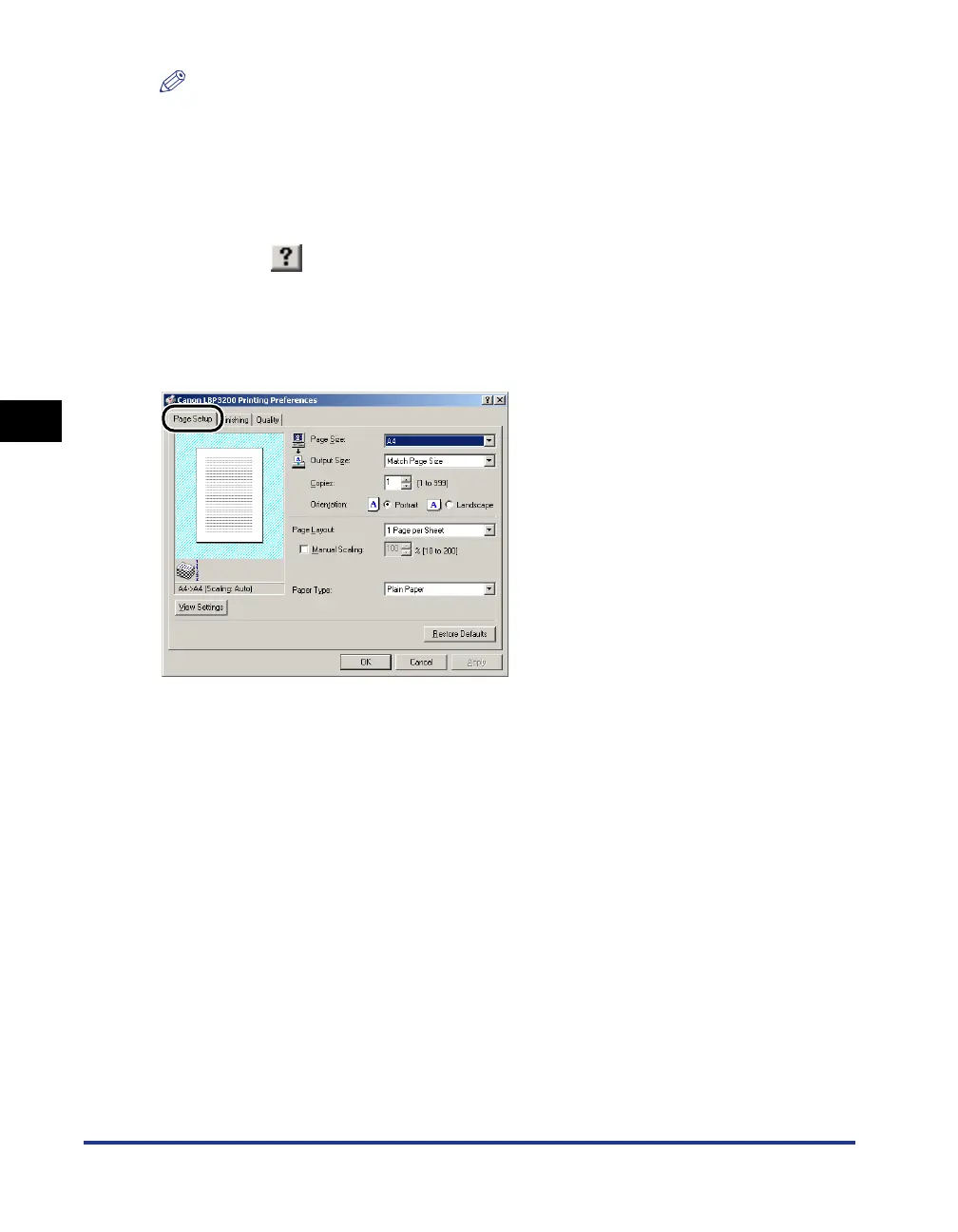 The [Page Setup] sheet allows you to specify the following printing preferences.