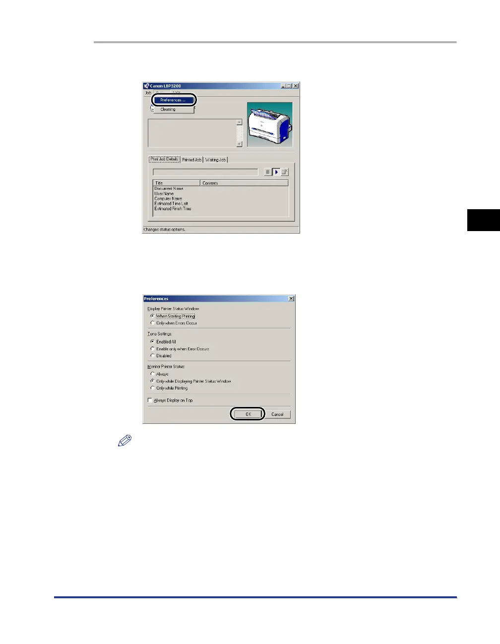 For detailed information on operations for the Printer Status Window, see the