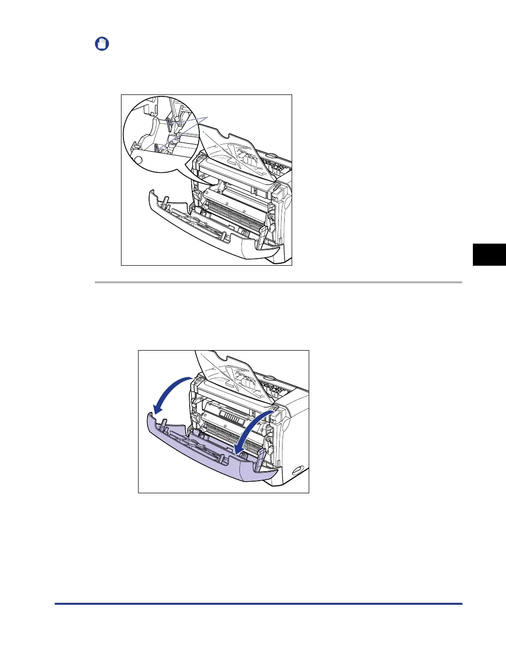 When opening the front cover, put your hands into the opening on both sides of