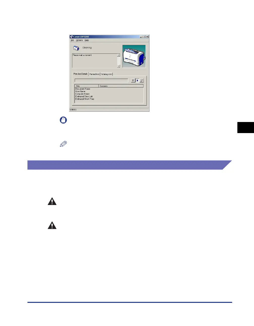 The message <Cleaning> appears on the Printer Status Window.