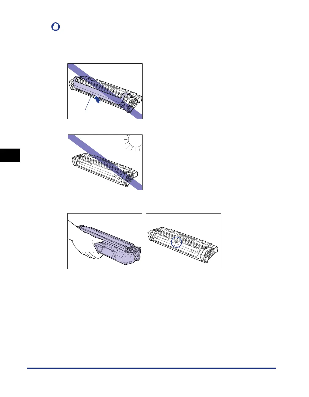 Do not expose the toner cartridge to direct sunlight or strong light.
