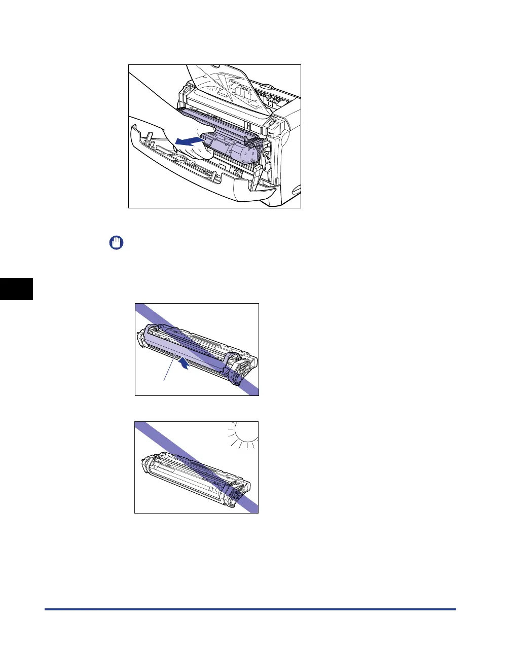 Print quality may deteriorate if you touch or damage the drum inside the toner