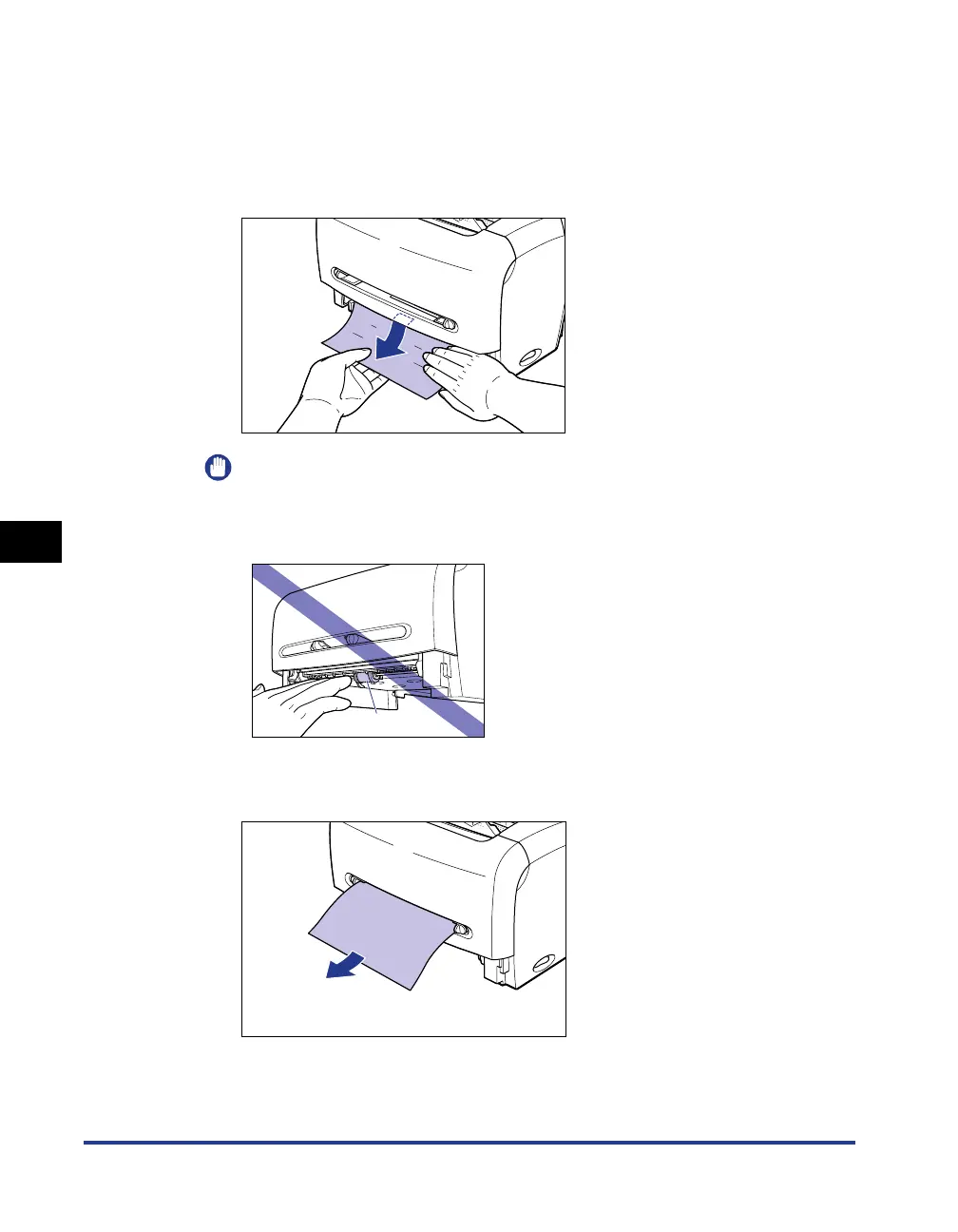 ❑ While putting your hand on paper as shown in the figure, slowly pull jammed