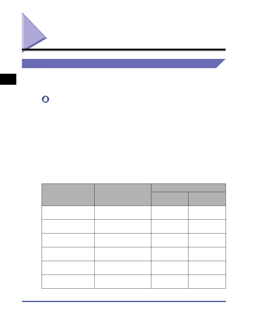The following shows the usable paper sizes. A circle mark (O) indicates that the