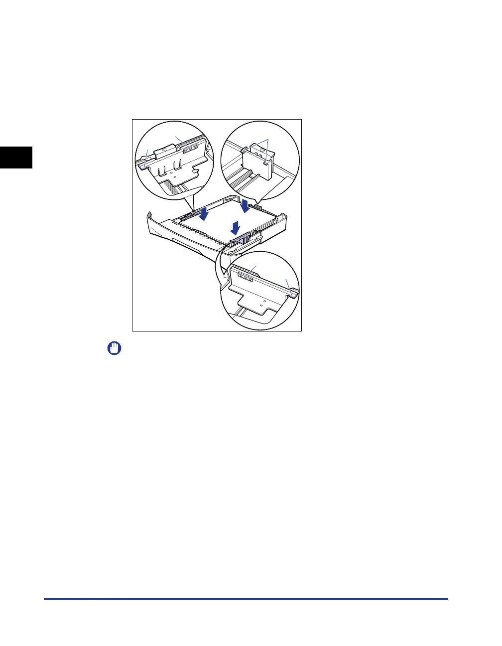 The following shows the cassette capacity. Be sure that the paper stack does not