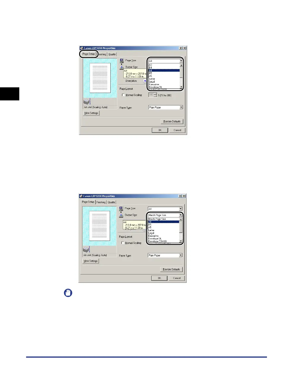 If the settings are different between [Page Size] and [Output Size], the printer