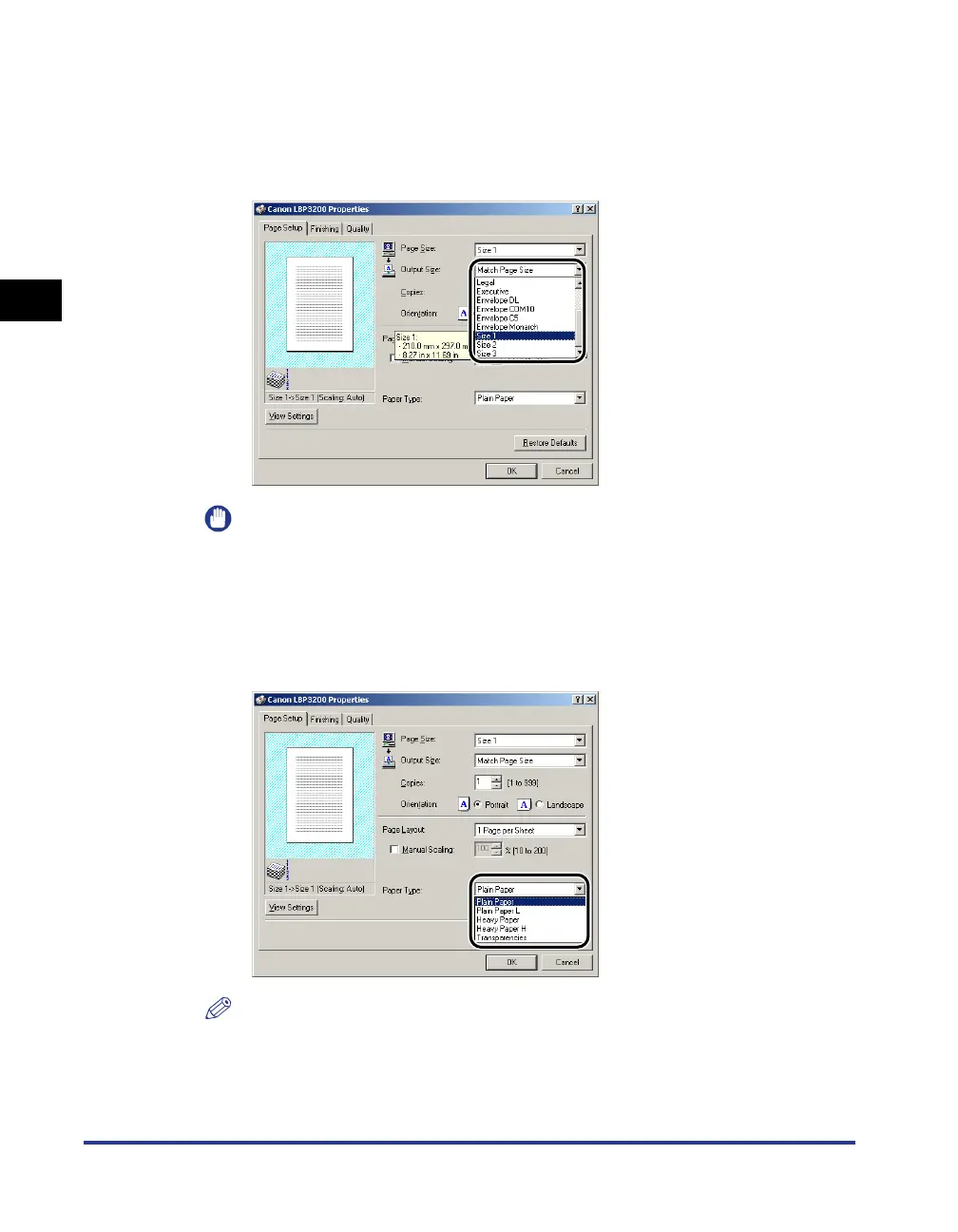 If the settings are different between [Page Size] and [Output Size], the printer