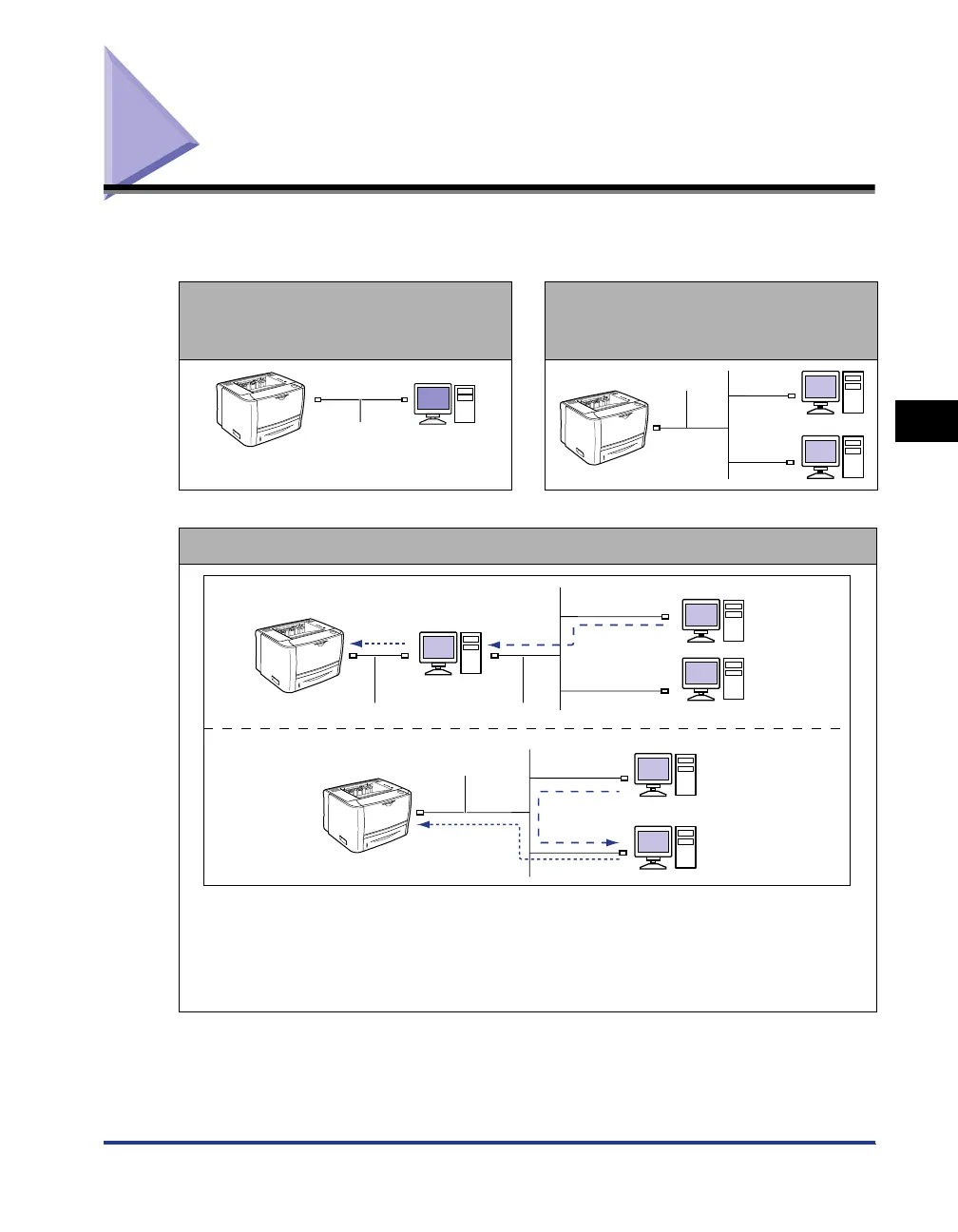 - If the printer and print server are connected by a LAN cable* (See Network Guide)