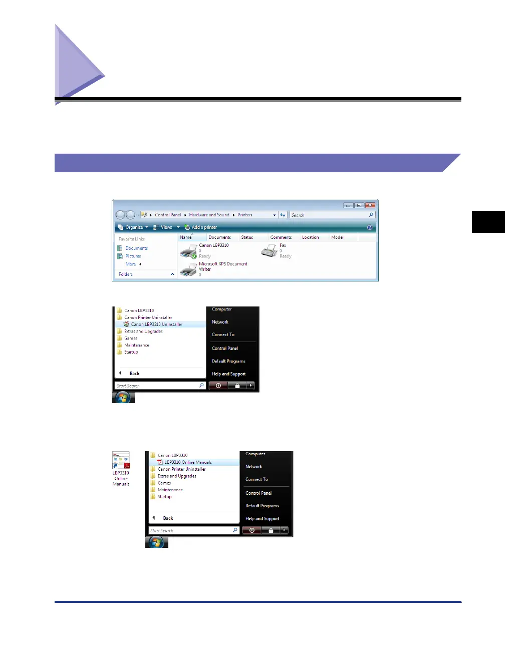[LBP3310 Online Manuals] under [Canon LBP3310] is added to [All Programs] under the