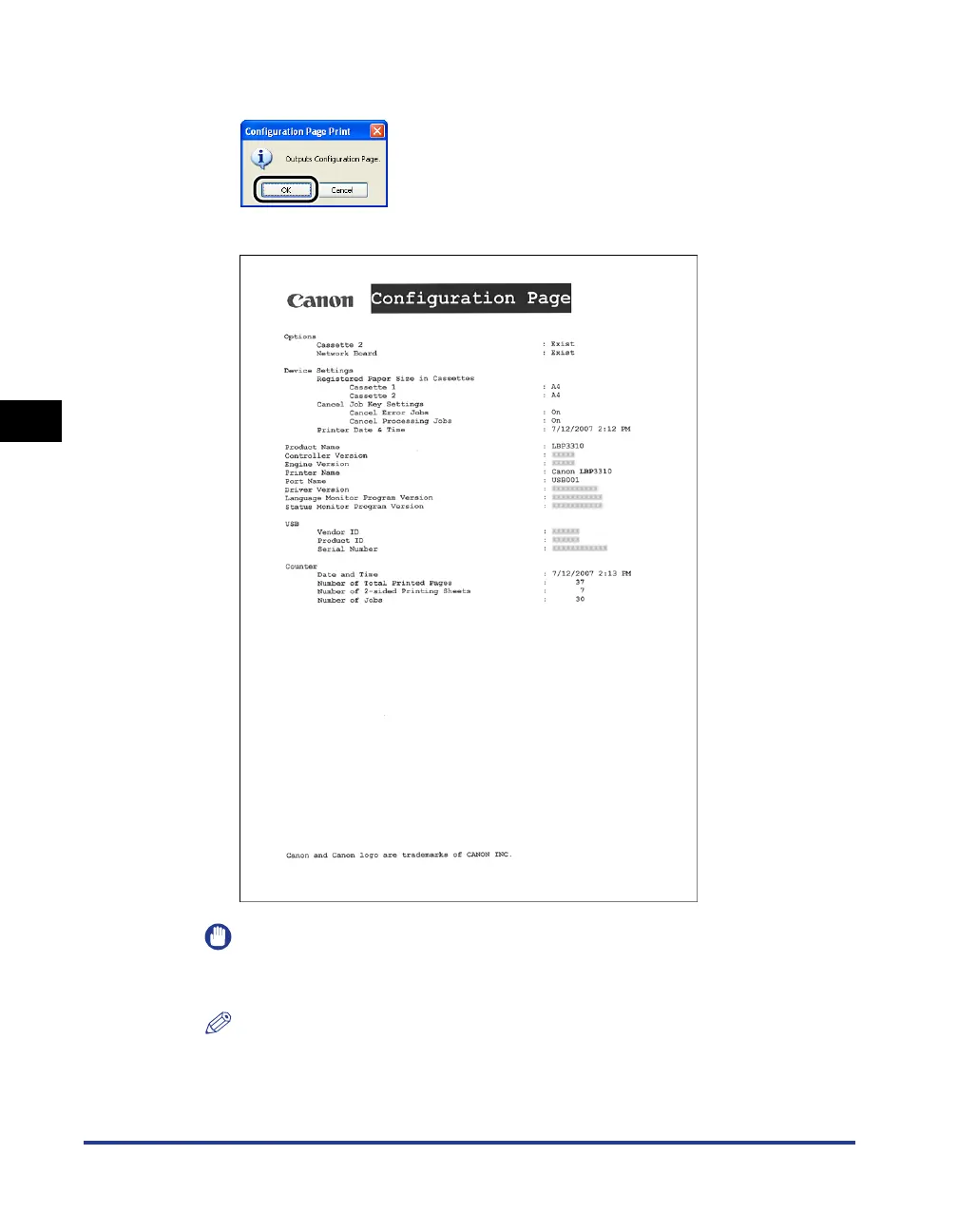 If Configuration Page Print is not printed properly, see "Chapter 8 Troubleshooting".