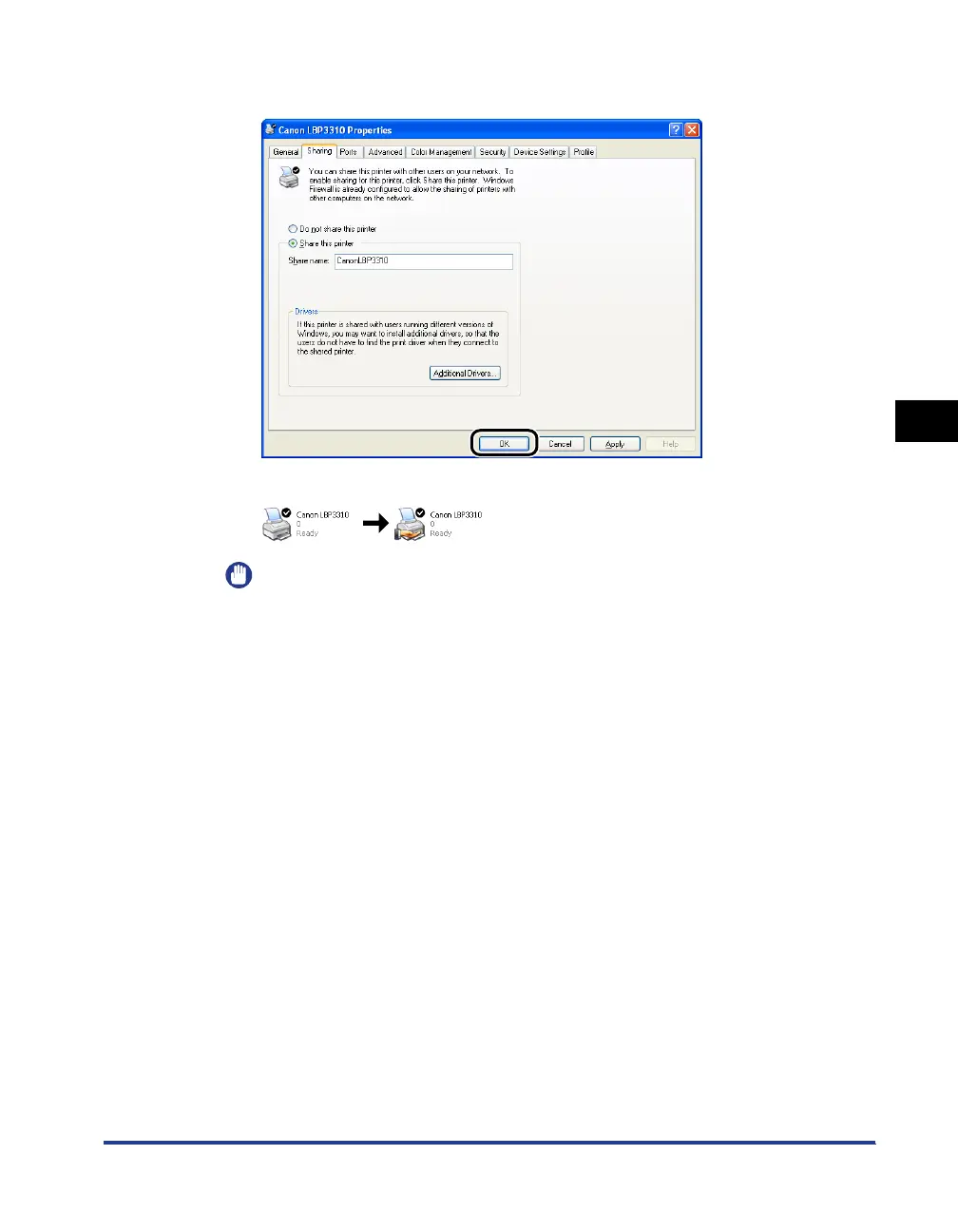 printer] ([Not shared] for Windows 2000) in the [Sharing] sheet.
