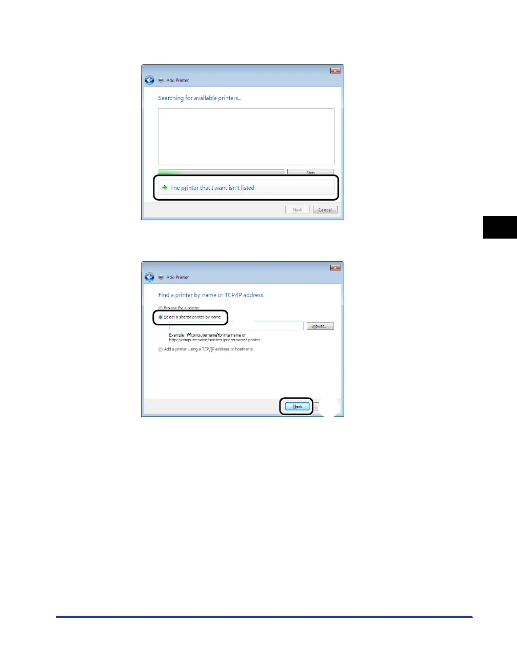 Select [Select a shared printer by name]