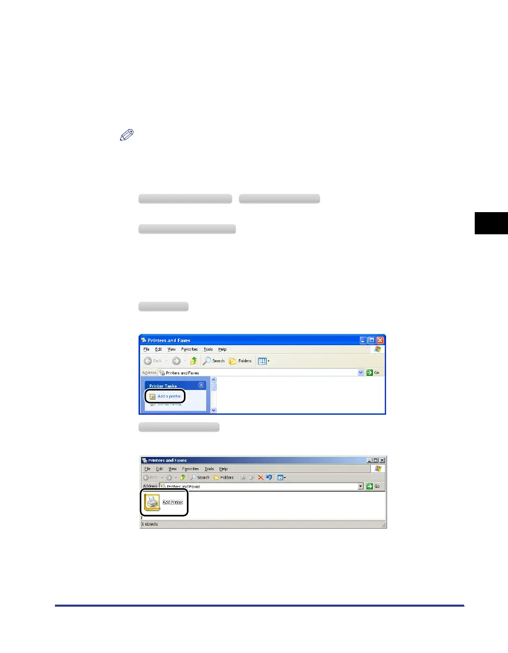 From the [Start] menu, select [Control Panel], and then click [Printers and Other Hardware]