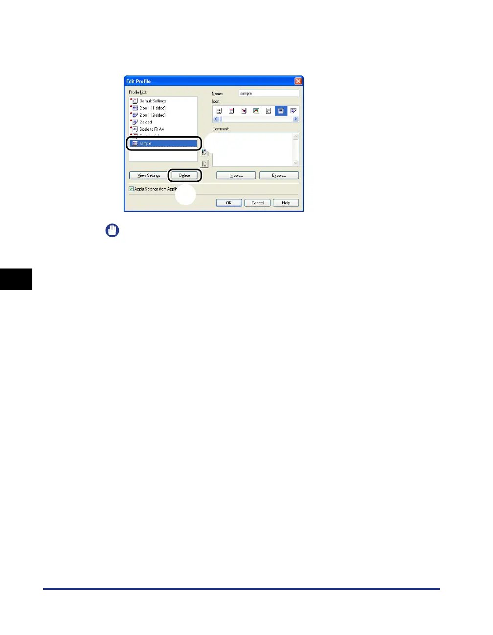 Also, you cannot delete the "Profile" currently selected in each sheet.