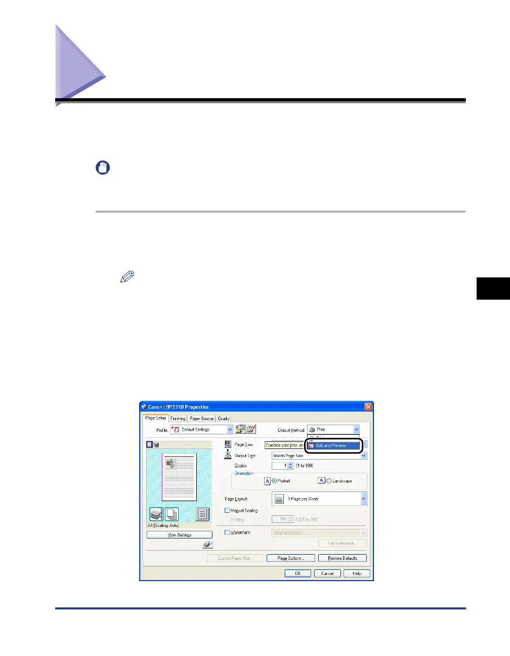 Select [Edit and Preview] from [Output Method].