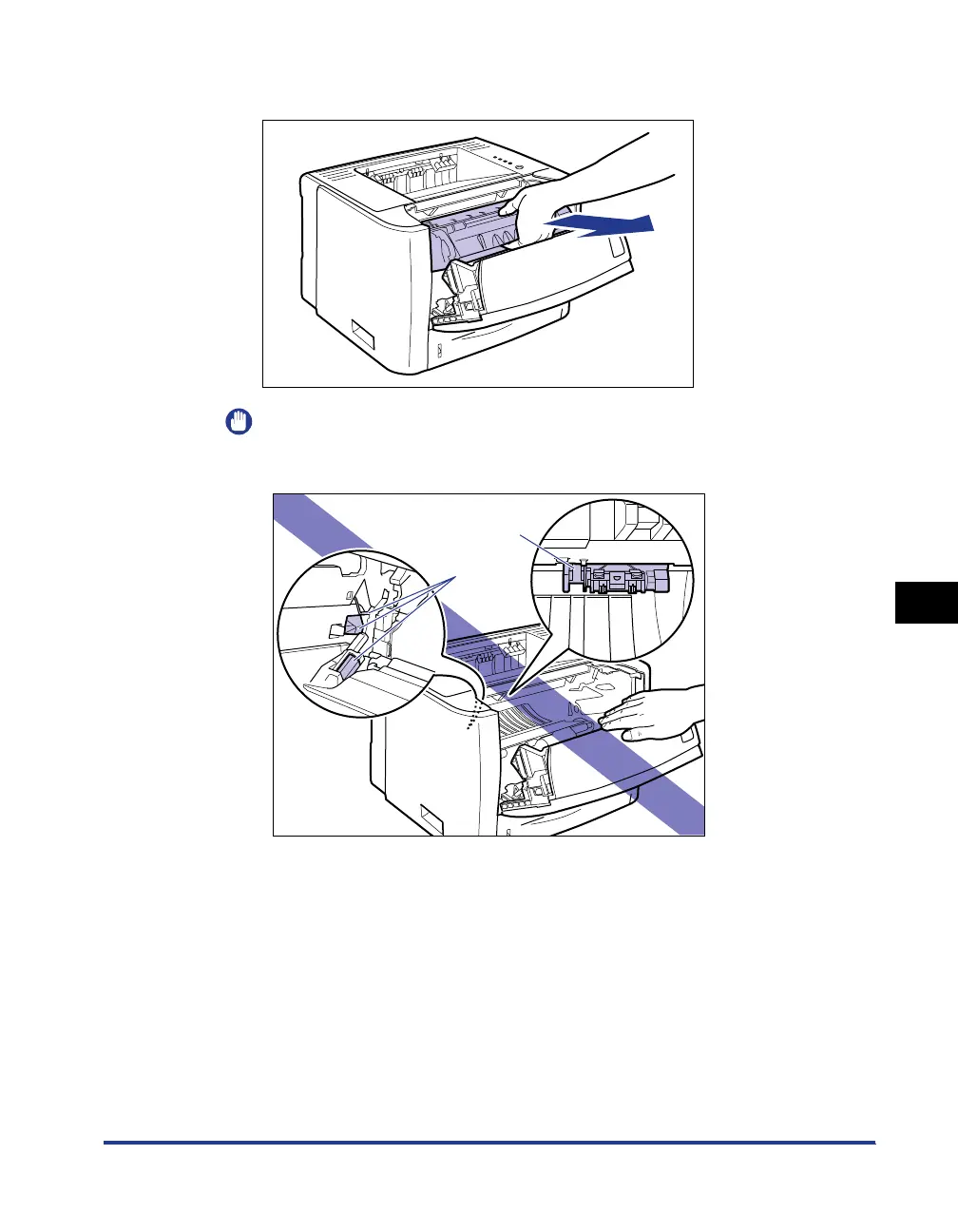 Do not touch the high-voltage contact (A) or the electrical contacts (B) shown in the