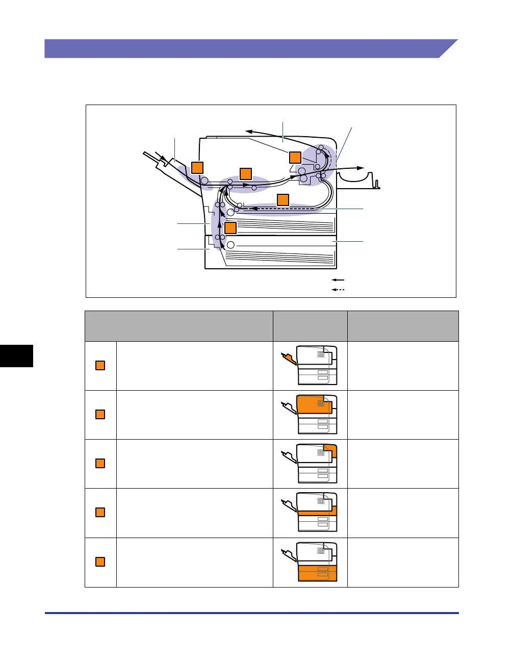 * In "Precautions on Clearing Paper Jams" (See p. 8-3), this mark is attached to the left of each step, indicating the
