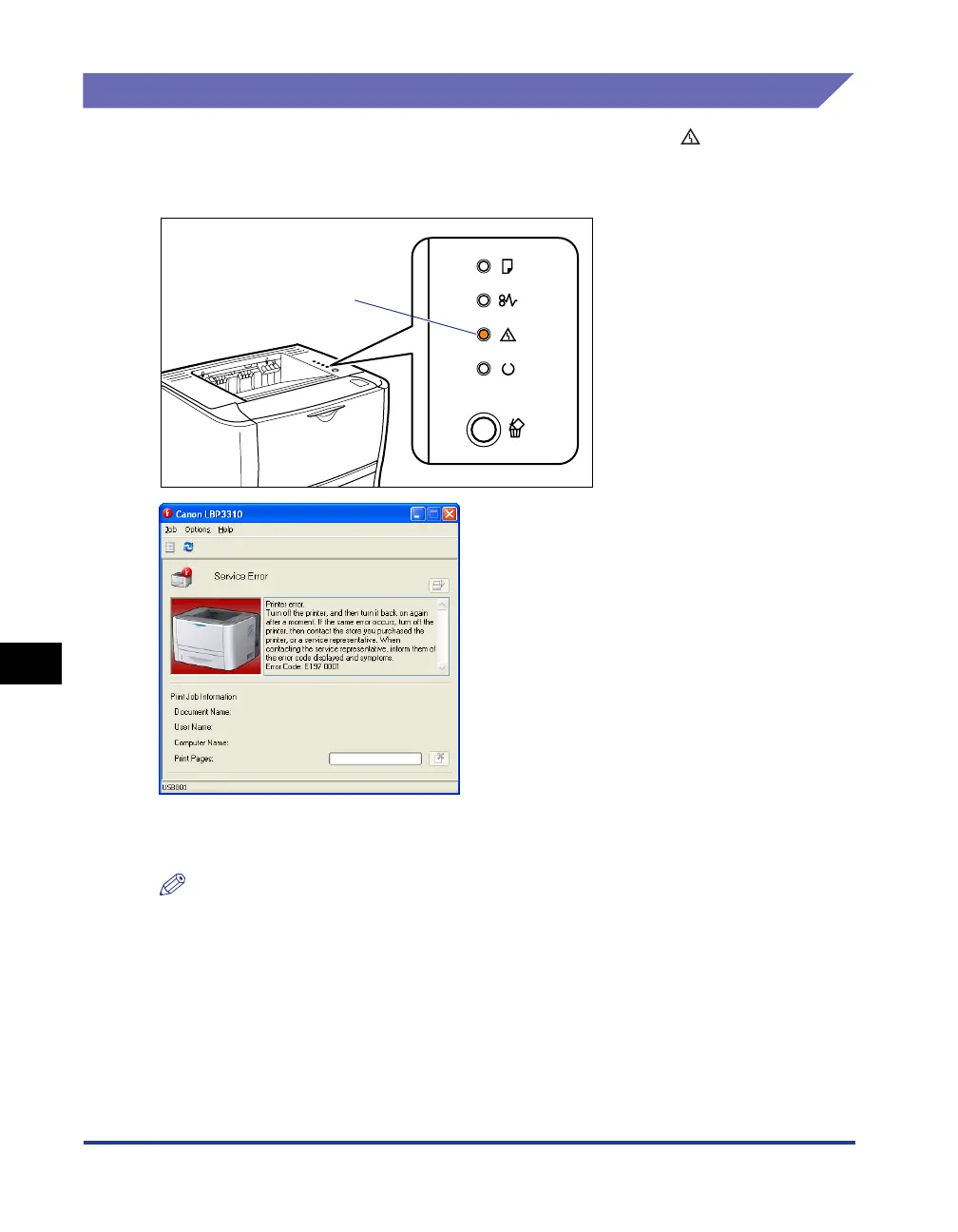 (orange) comes on and the following service error appears in the Printer Status