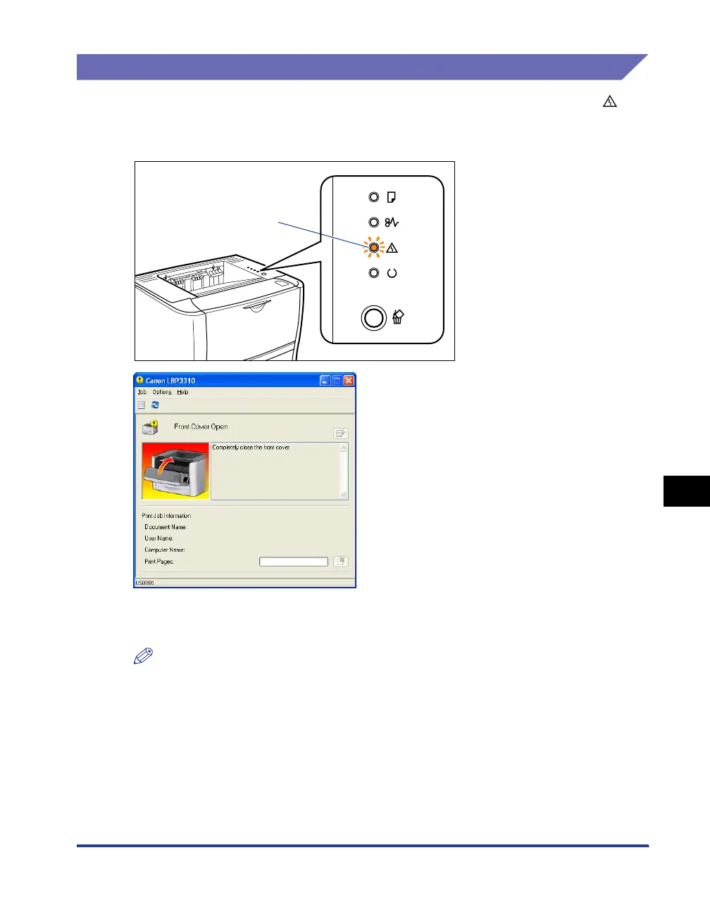 If an error has occurred in the printer and the printer requires attention, the