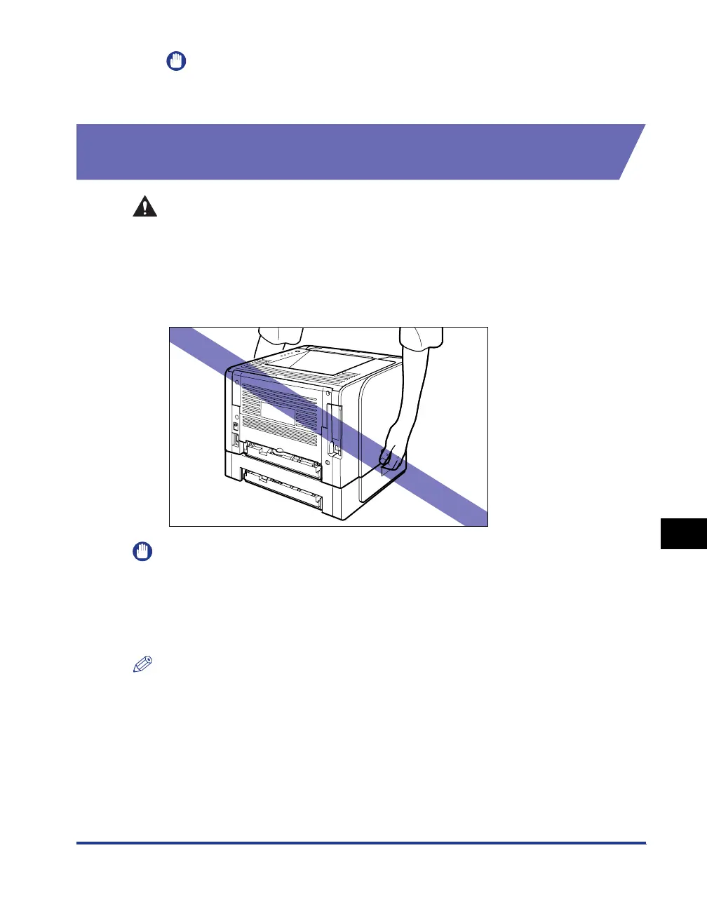 • Do not carry the printer with the paper cassette attached. If you do so, the paper