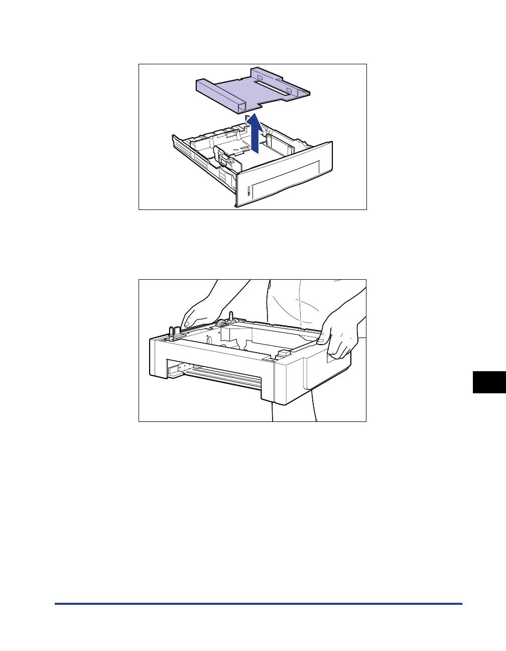 When carrying the paper feeder, hold the lift handles on both sides with both