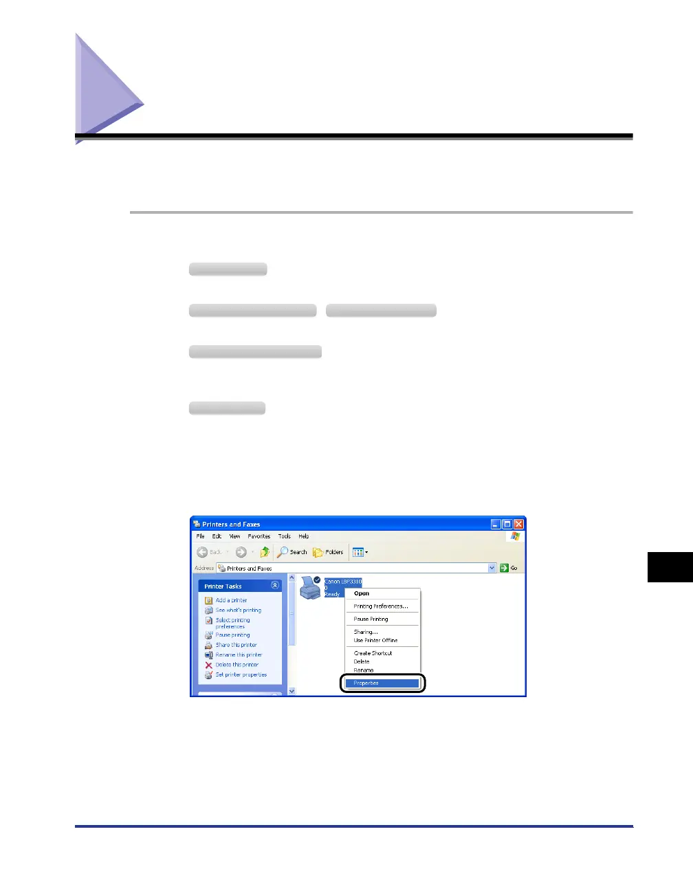 Display the [Printers and Faxes] folder or the [Printers] folder.