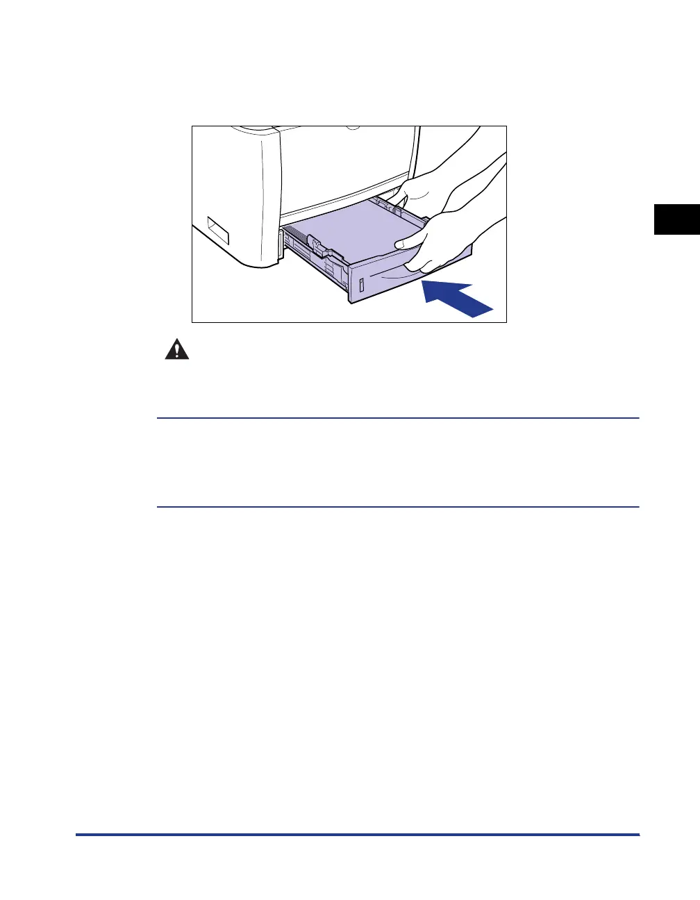 When setting the paper cassette in the printer, be careful not to catch your