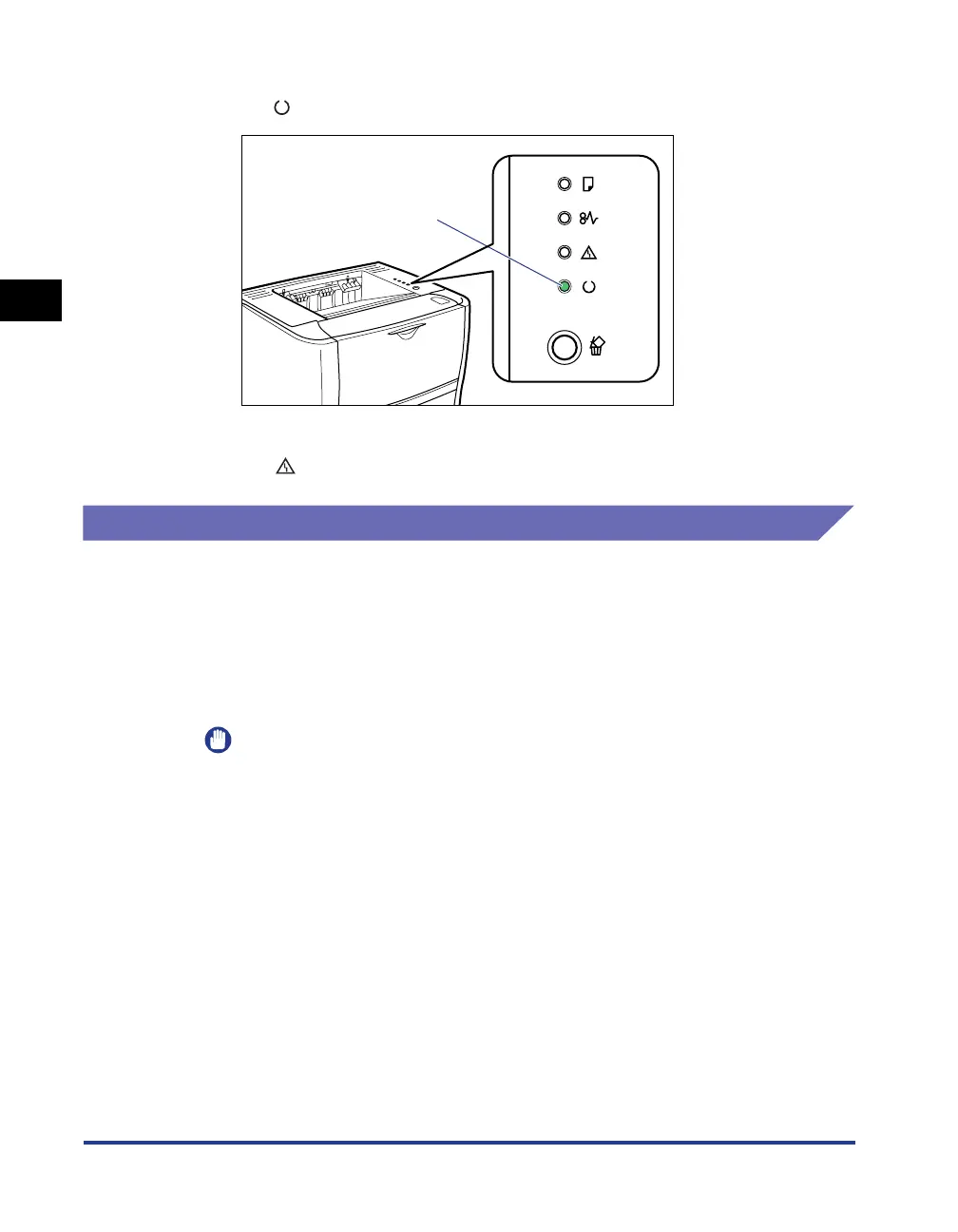 The (Ready) indicator (green) comes on, and the printer is ready to print.