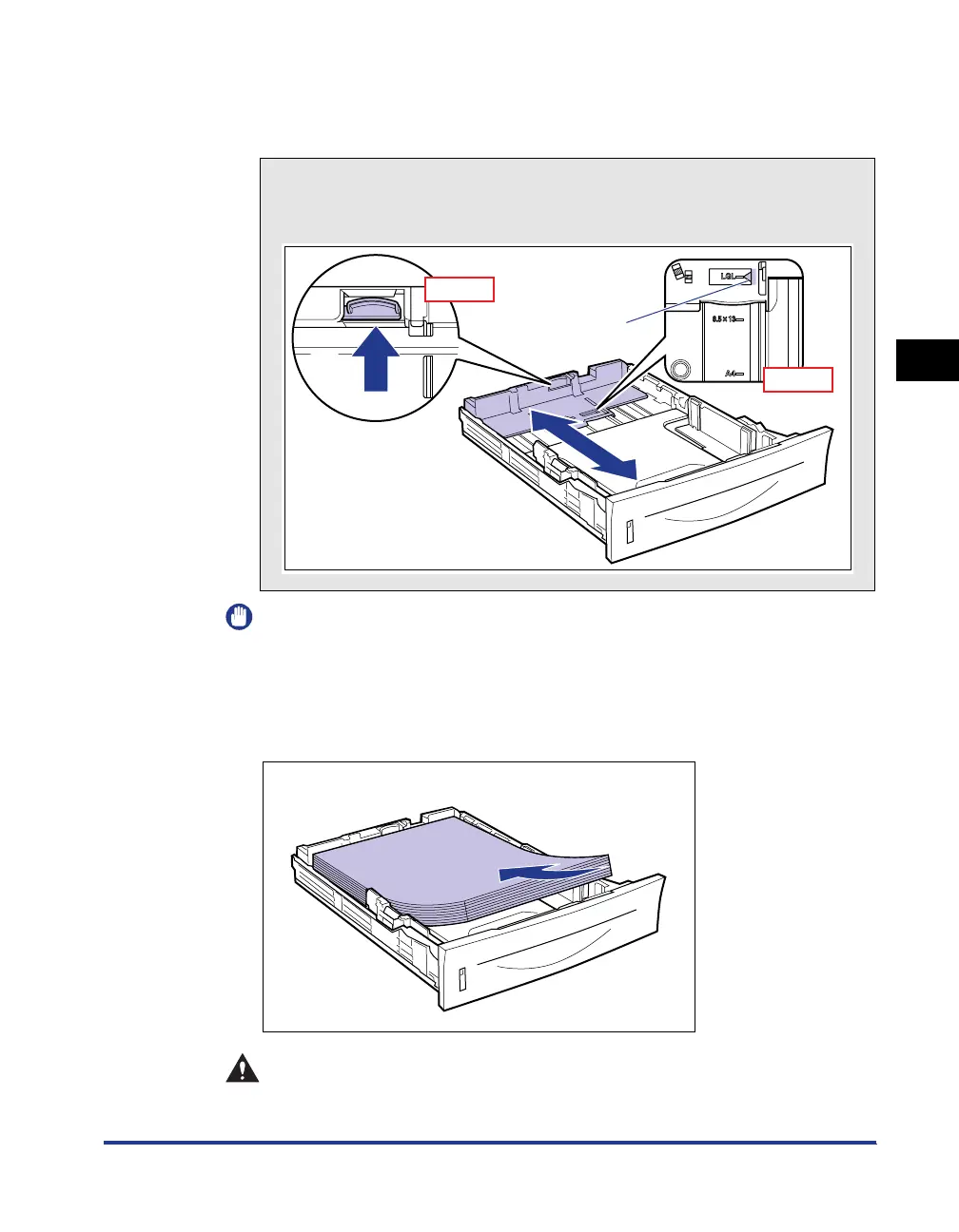 b Slide the paper guide to the size mark for the paper to be loaded.