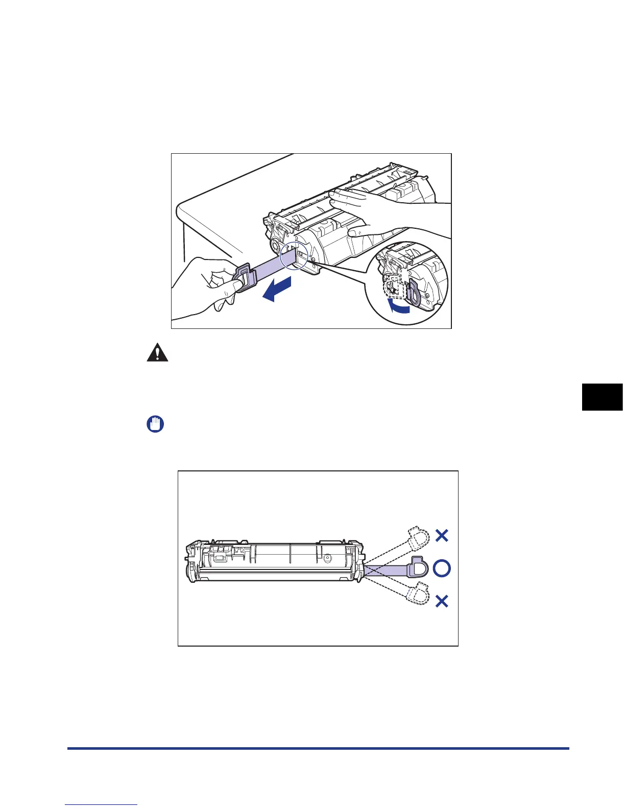 If the sealing tape is pulled out forcefully or stopped at midpoint, toner