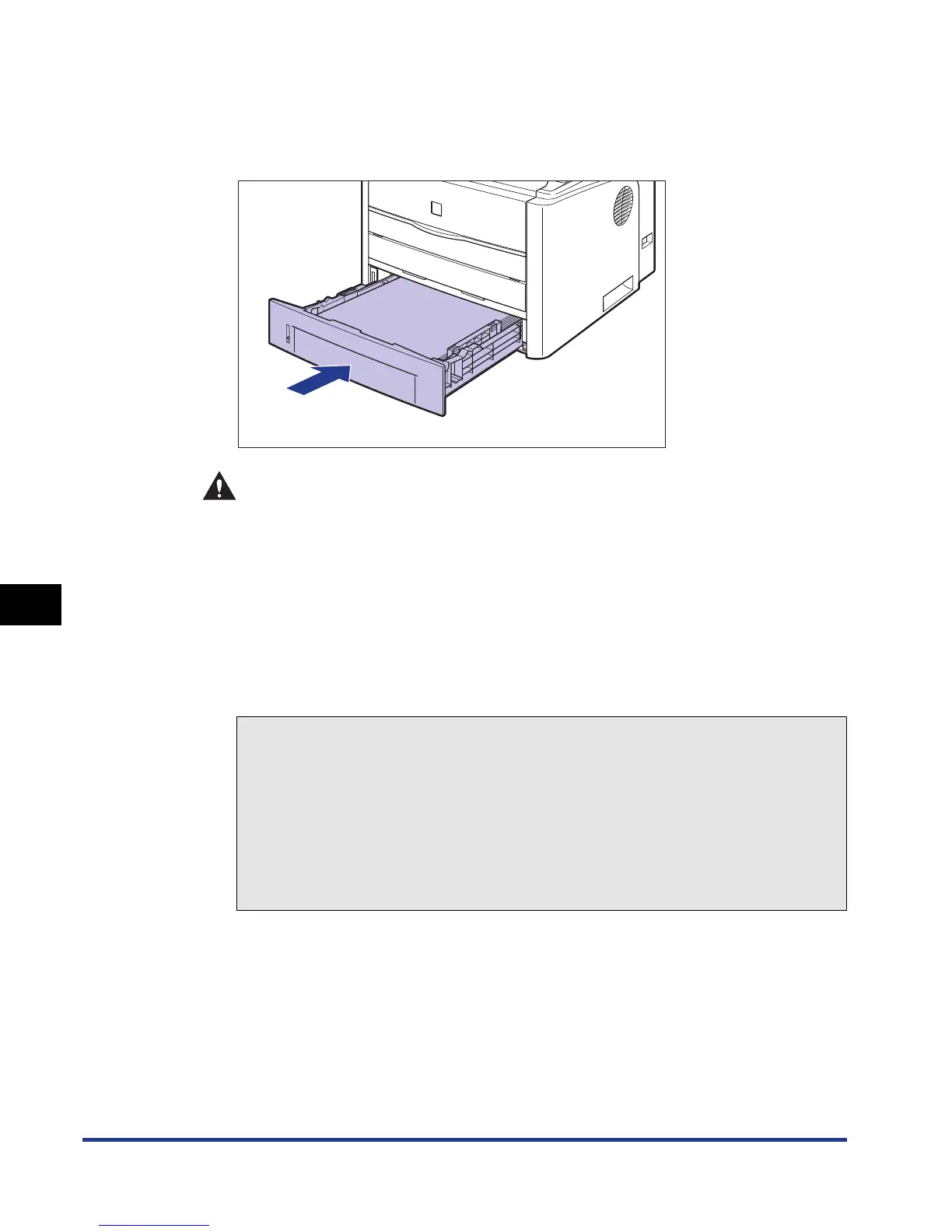 When setting the paper cassette, be careful not to catch your fingers.