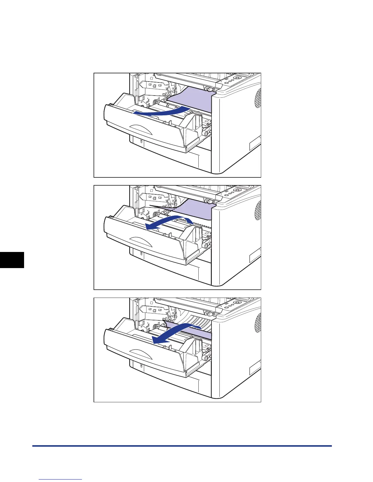Remove the jammed paper gently to prevent unfixed toner from spilling.