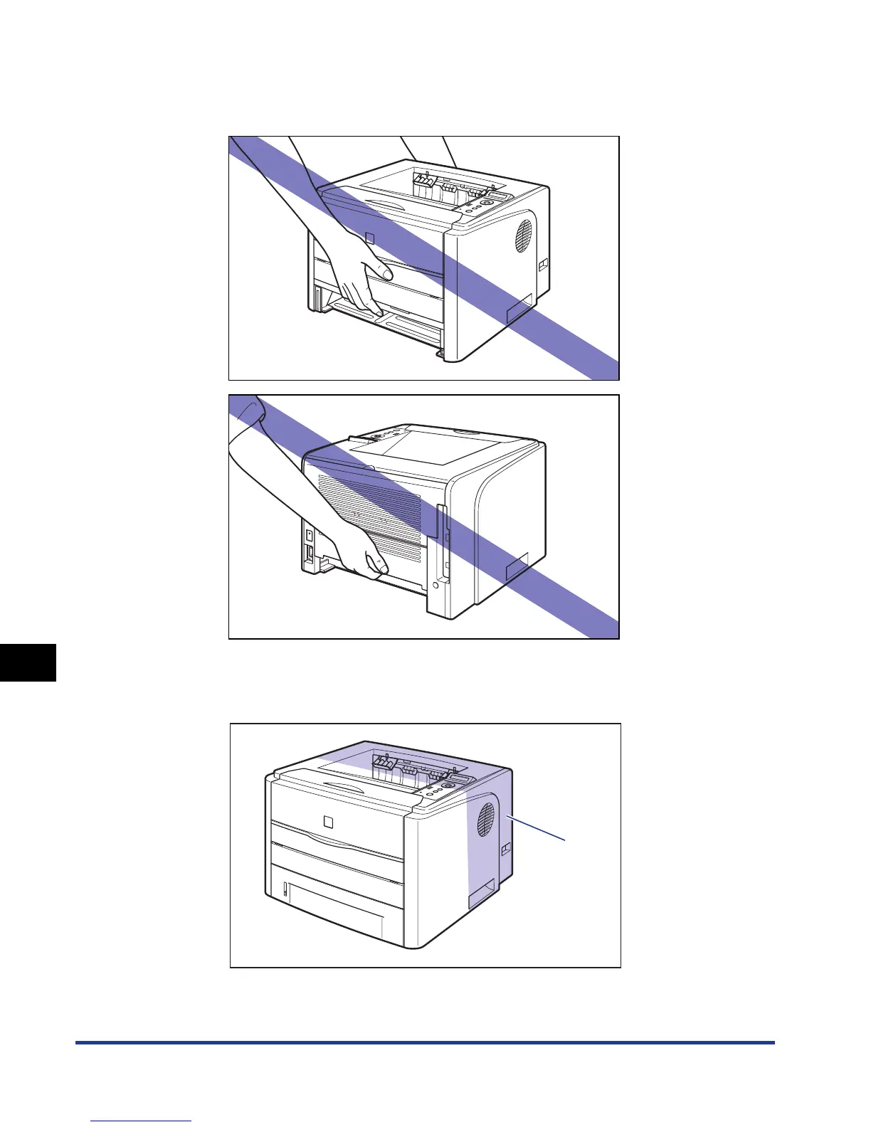 • Be sure not to hold the printer by the front portion, back portion, or any
