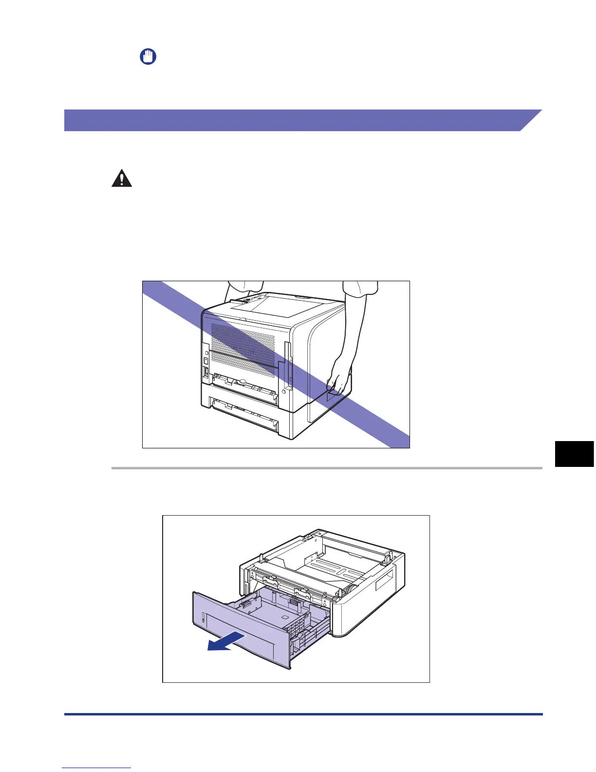 • Do not carry the printer with the paper cassette attached. If you do so, the paper
