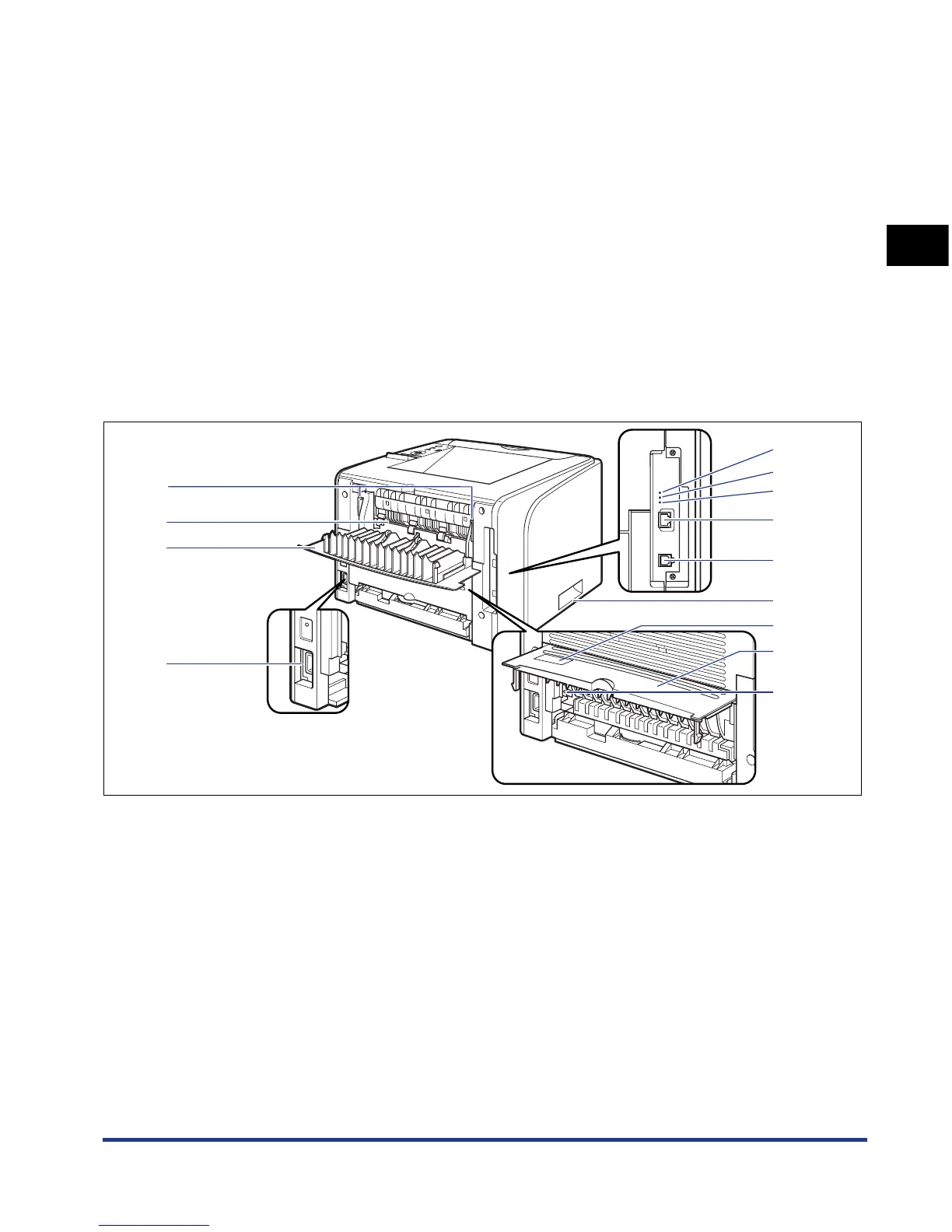 The following are the parts on the rear side of the printer and their functions.