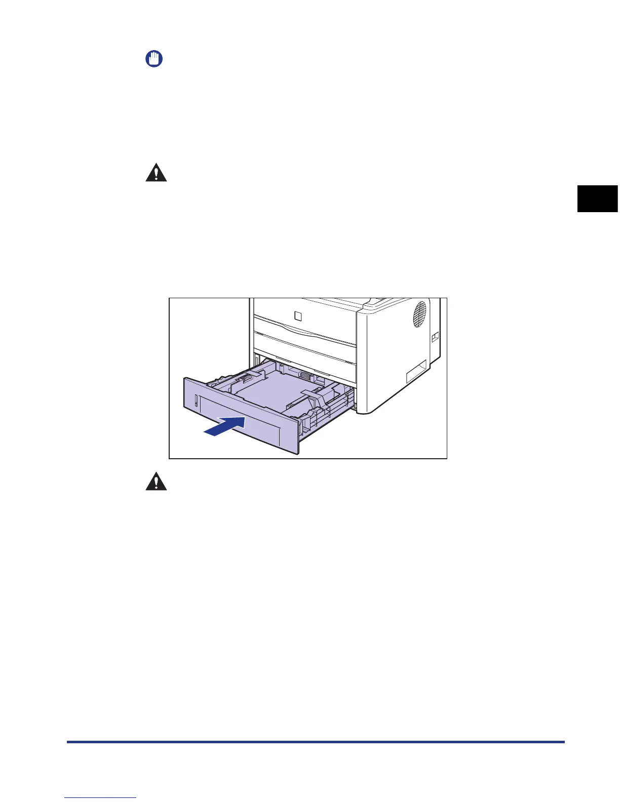 When setting the paper cassette, be careful not to catch your fingers.