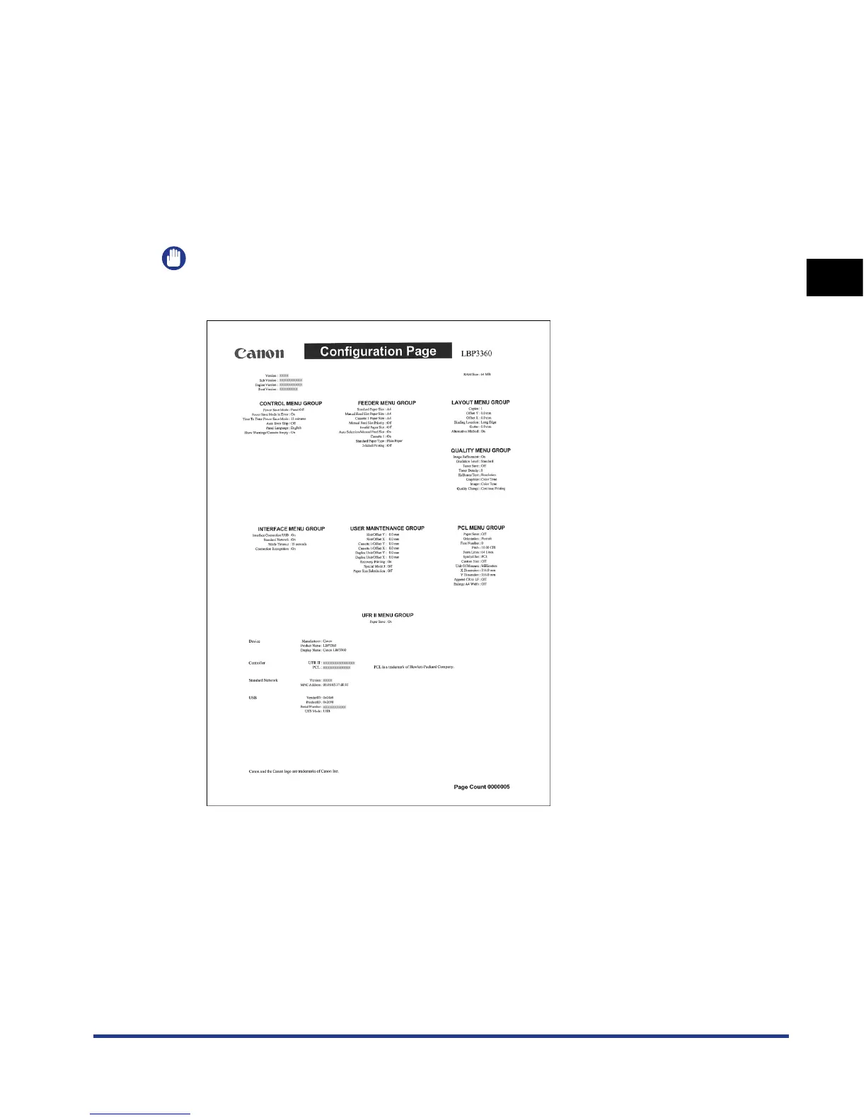 Configuration Page Print allows you to confirm information such as a list of the