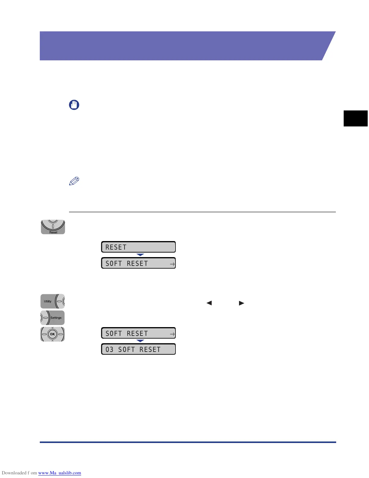 If you want to cancel the process currently being performed, perform [Soft Reset]