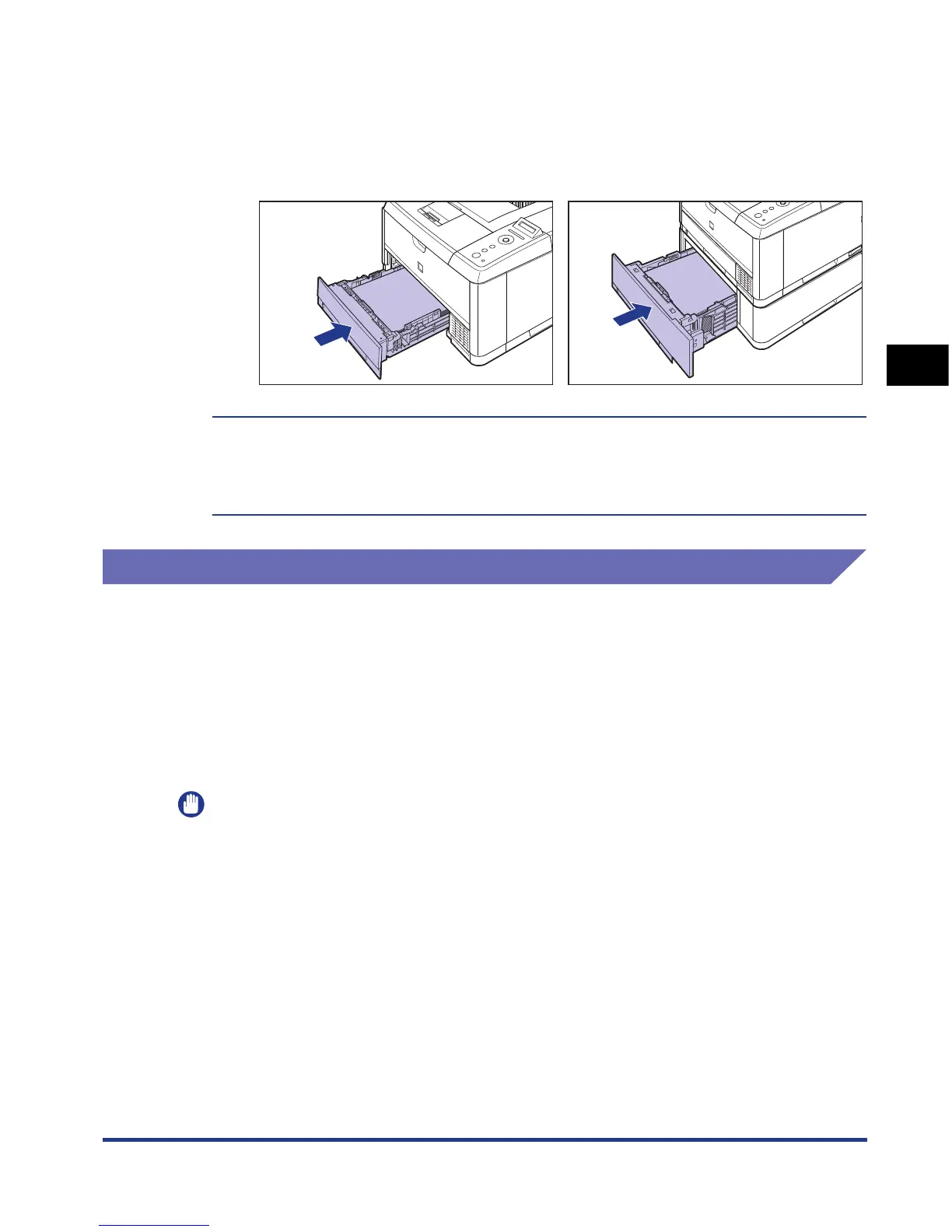 Push the paper cassette into the printer firmly until the front side of the paper