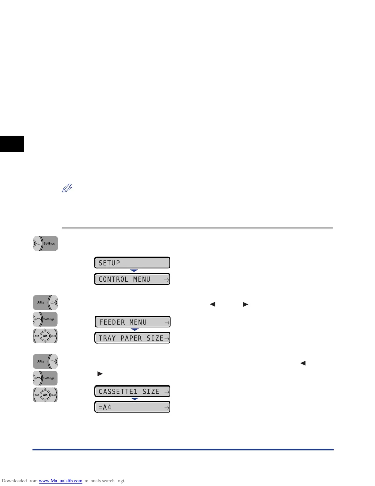 specify the settings for CASSETTE1 SIZE and/or CASSETTE2 SIZE each time the