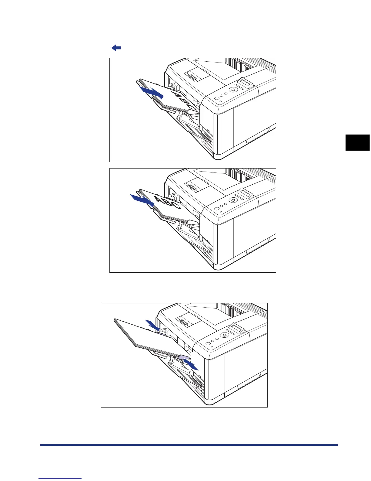 - When loading custom size paper in landscape orientation, load the paper so that