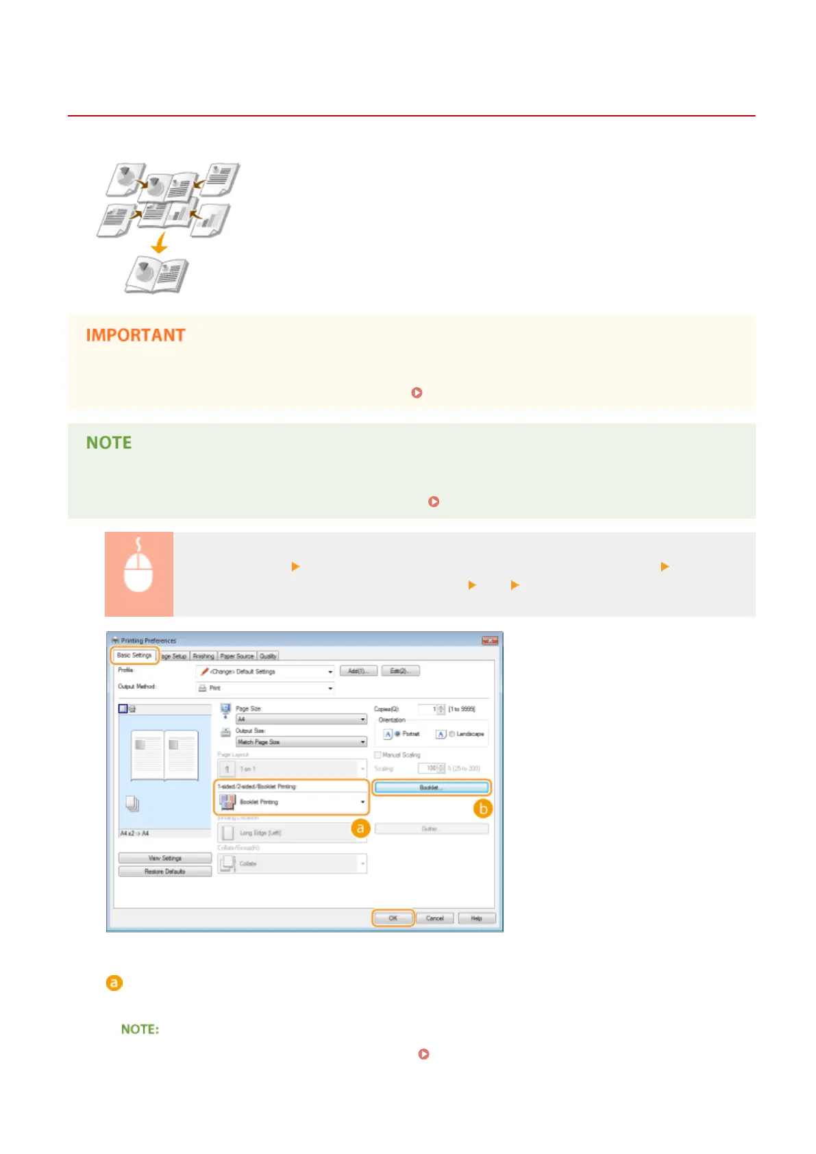 [Basic Settings] tab Select [Booklet Printing] in [1-sided/2-sided/Booklet Printing] Click