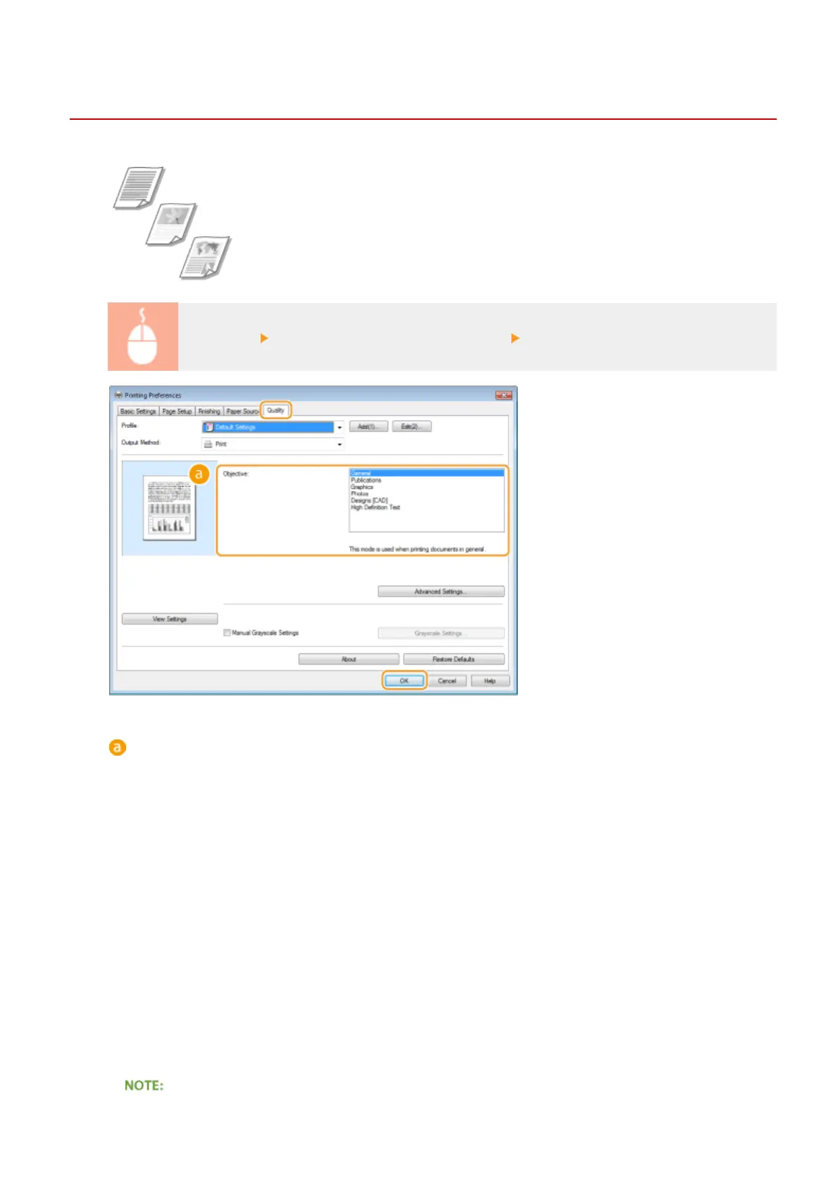 Select an option that suits the document type or purpose of printing. For example, select [General] for