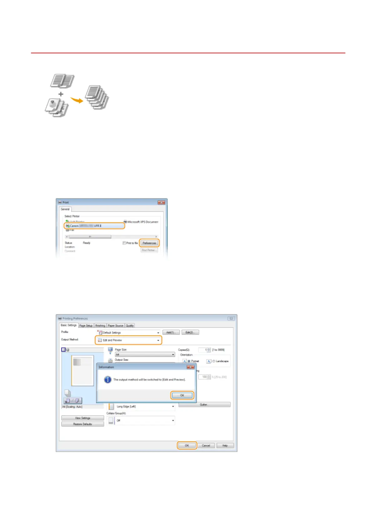 Select [Edit and Preview] in [Output Method].