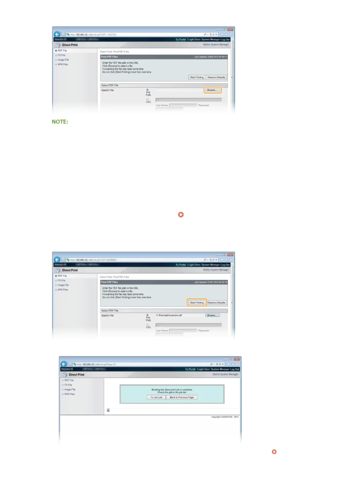 ● If you click [To Job List], the [Job Status] page is displayed to show the print status. Checking Current