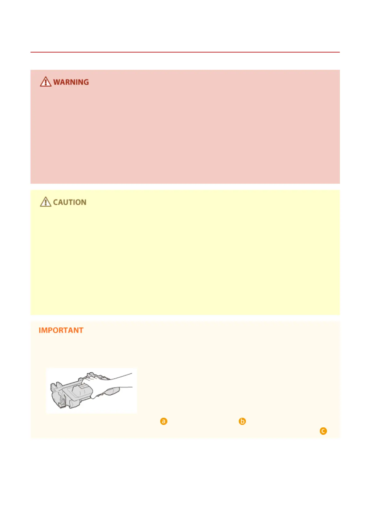 ● Use caution not to inhale any toner. If you should inhale toner, consult a physician immediately.