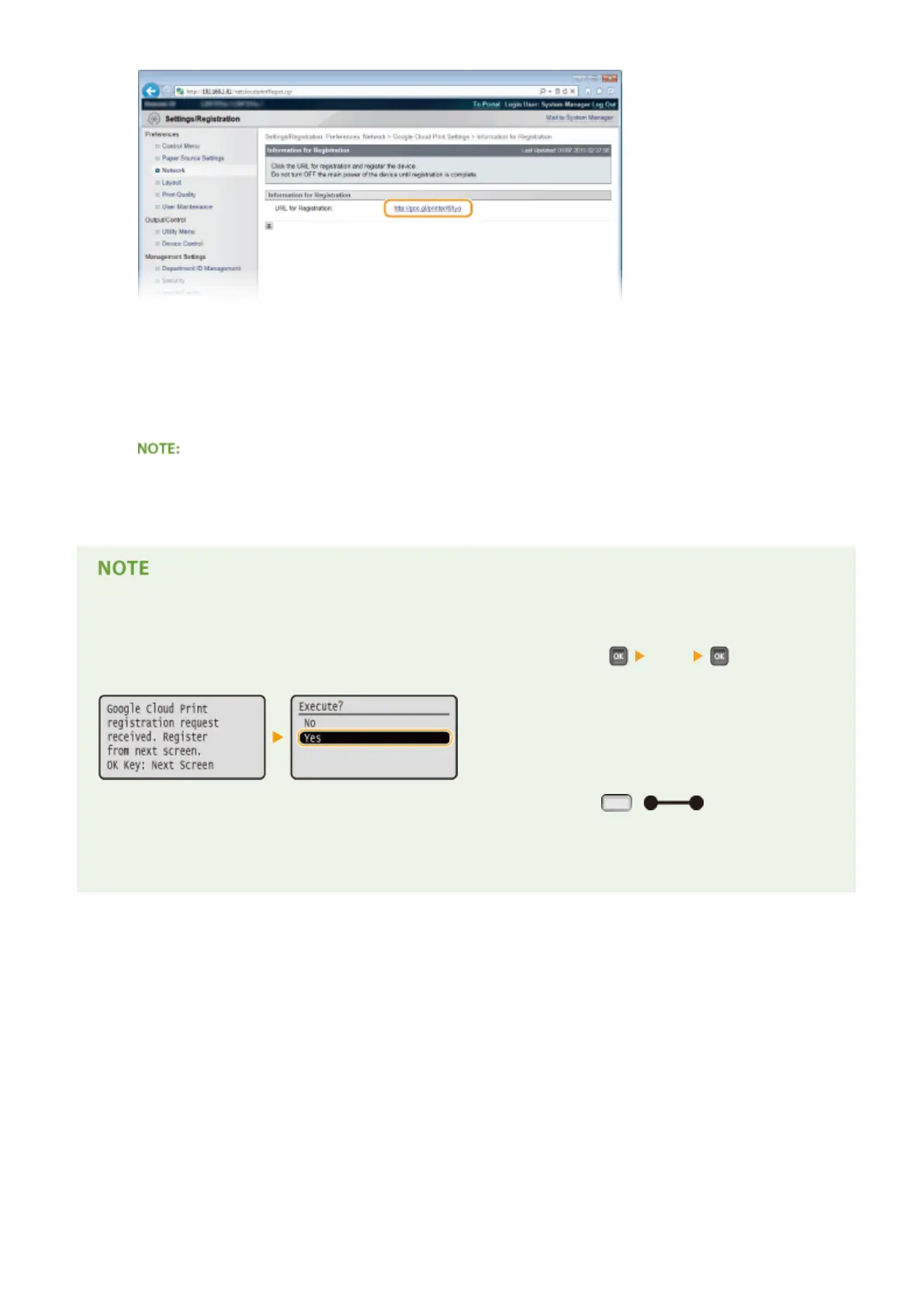 ● For the registration procedure, see the instruction manual for your mobile device or the Google Cloud Print